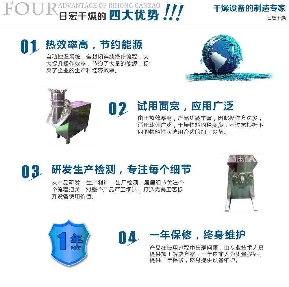 常州市日宏干燥有限公司可根據(jù)用戶的實(shí)際要求進(jìn)行工程設(shè)計(jì),目前單條生產(chǎn)線的產(chǎn)量有500kg/h、1000 kg/h .1500 kg/h。3000 kg/h等。雞精生產(chǎn)主要包括粉碎、秤重、混合、制粒、干燥、分篩、加香等步驟,我公司生產(chǎn)的具有工藝設(shè)計(jì)緊湊、設(shè)備制作精美、流水化運(yùn)作程度高、產(chǎn)品品質(zhì)穩(wěn)定、易清潔保養(yǎng)等特點(diǎn)。設(shè)備與物料接觸部位全部采用優(yōu)質(zhì)不銹鋼材料,并經(jīng)過精細(xì)拋光,耐鹽份腐蝕,清洗更方便,符合食品生產(chǎn)管理的QS要求及GMP標(biāo)準(zhǔn)。